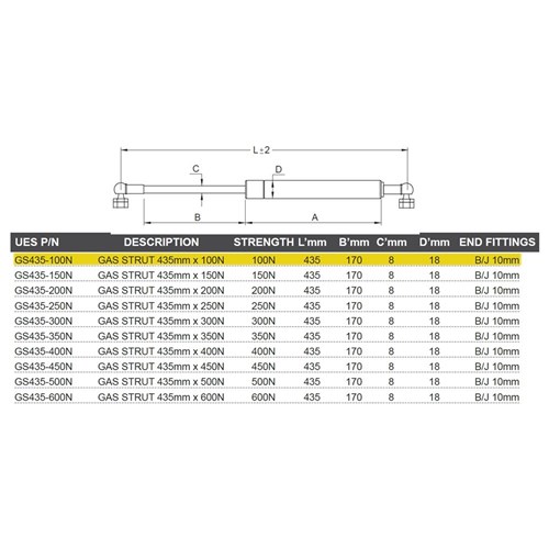 Gas Strut 435mm x 100N